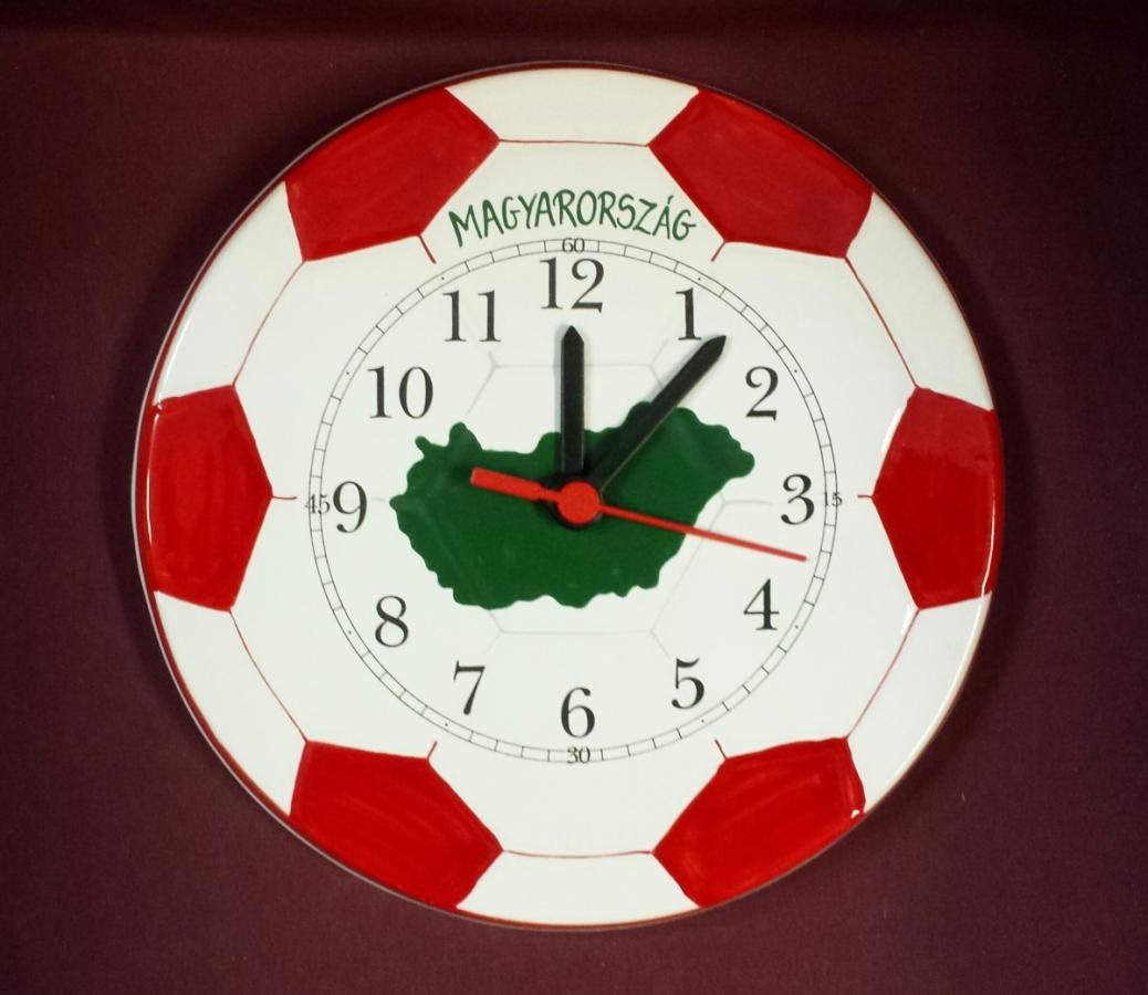 21 cm átmérőjű, focilabda domborítású fali óra. Súlya kb. 380 gramm.